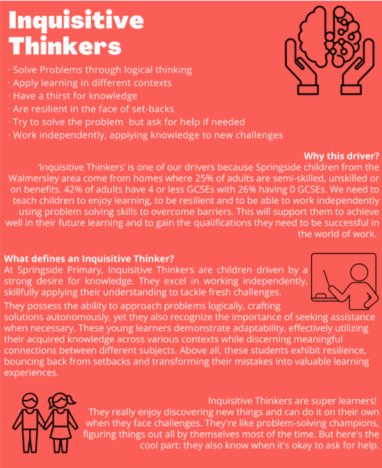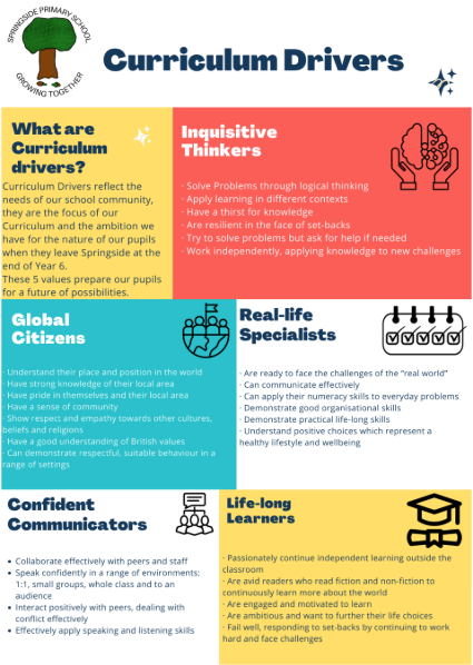 These drivers have helped us to decide how to develop our curriculum and they have helped us decide what we need to teach and when.